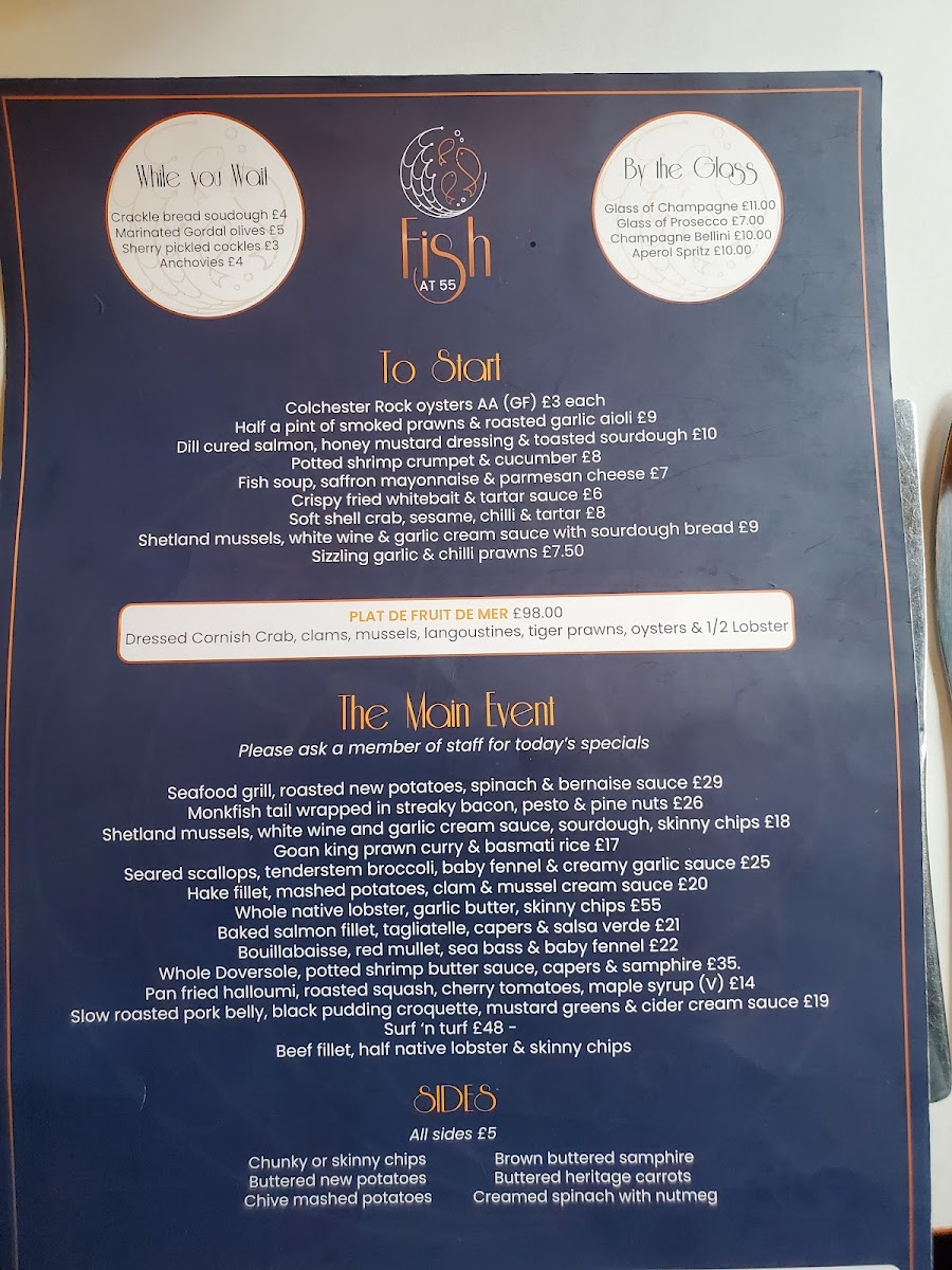 Located at 55 High St, The Precinct, Rochester ME1 1LN, United Kingdom, Fish At 55 is a standout dining option for anyone seeking an exceptional seafood experience. Upon entering, the warm and inviting ambiance instantly sets the stage for a memorable meal. The restaurant specializes in offering fresh, high-quality fish dishes, with a menu that caters to a variety of tastes.
